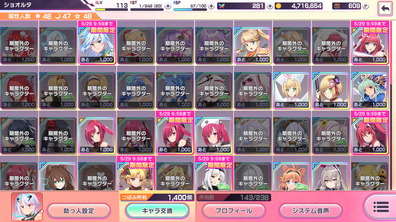 ▲限定キャラクターは交換出来る期間や条件が決まっている。今は「フェス限定キャラ」が交換出来る