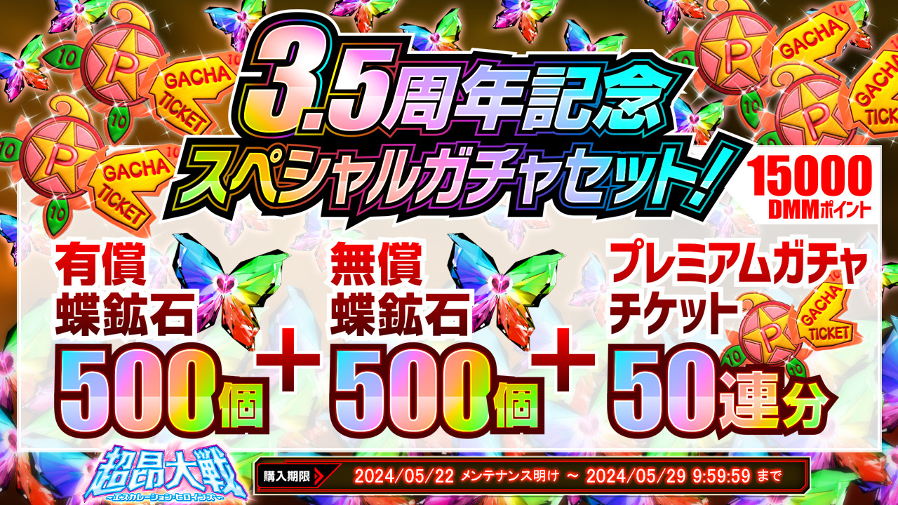 3.5周年記念スペシャルガチャセット【蝶鉱石1000個+プレミアムガチャチケット】