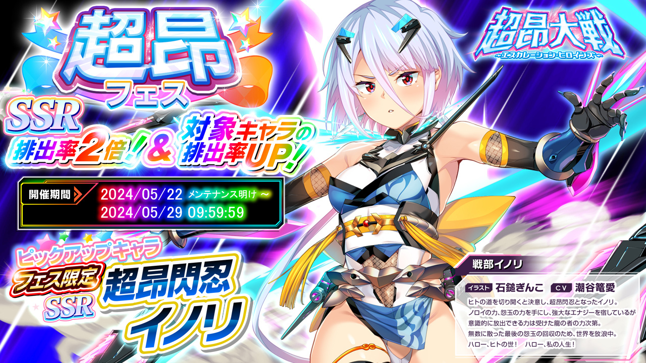 最強フォーム『超昂閃忍イノリ』登場!! フェス限定キャラ入手チャンスの『超昂フェス』!!