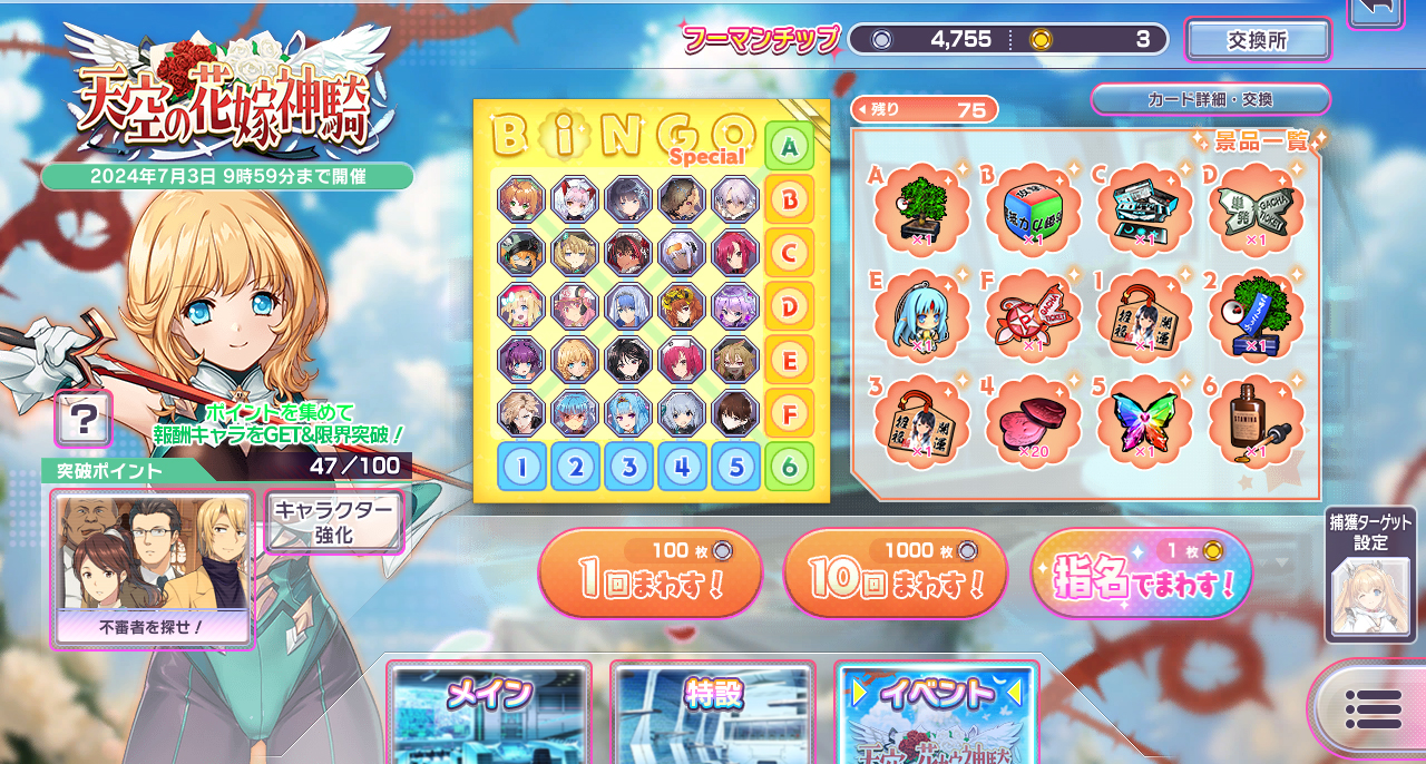 イベント期間が長いので、ビンゴで良い景品をあらかた集めてから交換所でフーマンチップを使うのがオススメだ。