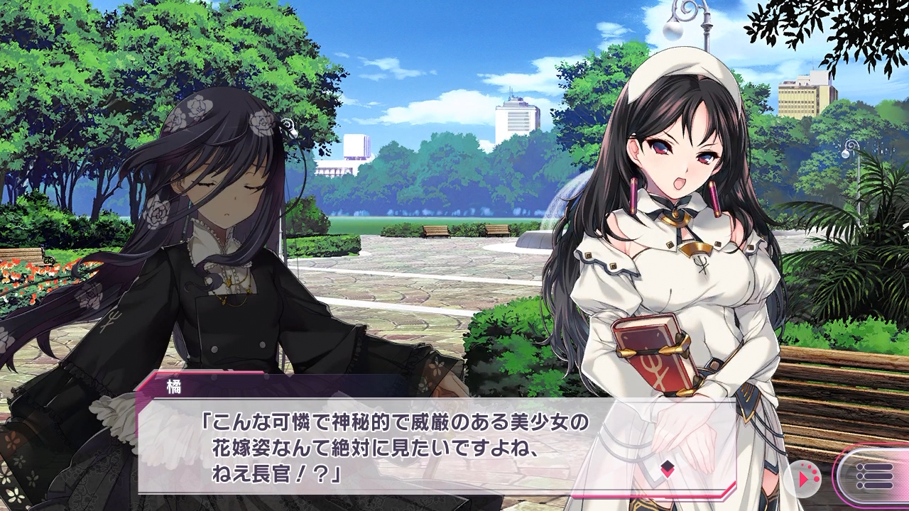 花嫁衣装に身を包んだエリスたちはキャンペーンガールに扮し現場警備にあたる。