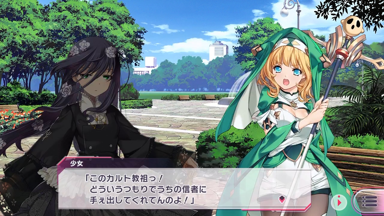 ▲そこに突然ハニワ教の神官、水無月葉新が現れて繭に言いがかりを!? どうやら信者を、繭の新興宗教『常世神枝』に取られたと怒っているみたいだけど…