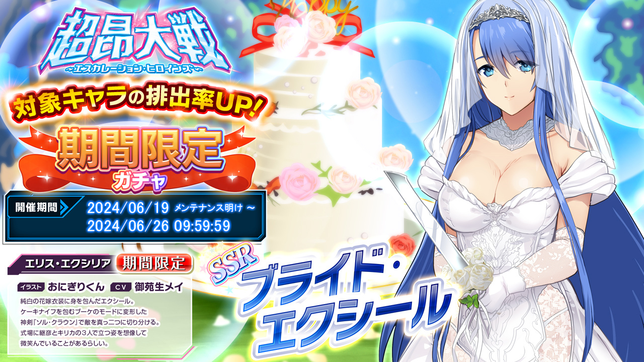 ブライド・エクシールのピックアップはイベント期間前半の一週間、6月26日9時59分までなので注意しよう。