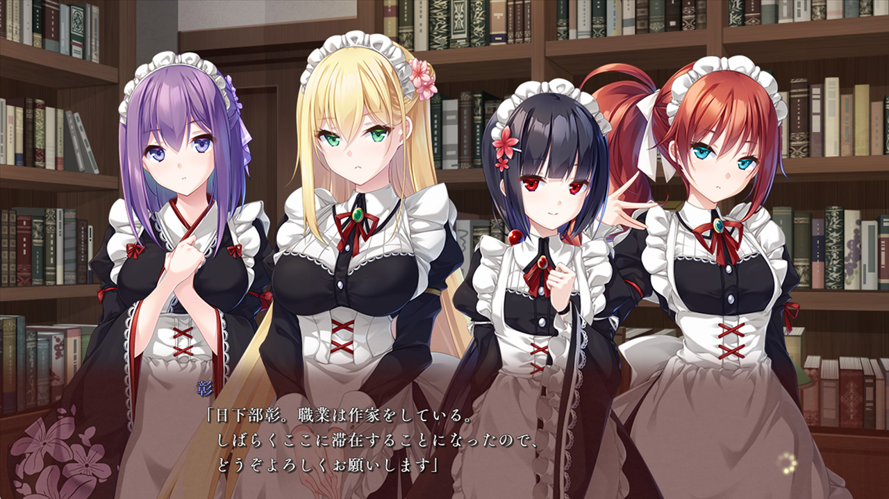 ▲館で暮らすことになった主人公が4人のメイドさんに自己紹介。彼女たちの反応は如何に…?