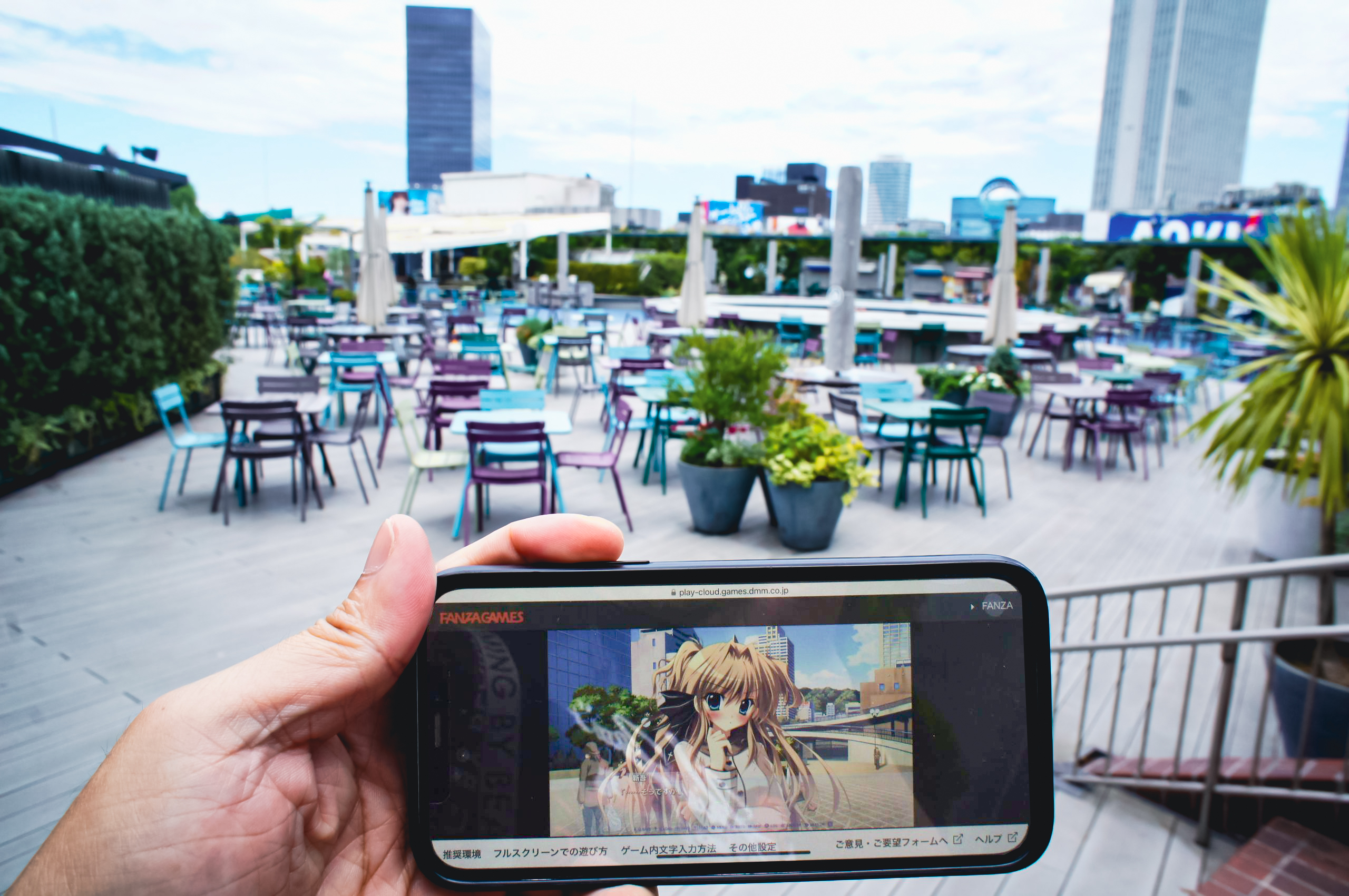 ▲暑い日だったので涼を求めつつ人のいない場所を探して見つけたのが、百貨店の屋上。風が通って涼しいし、人も少なくてじっくりゲームが楽しめた