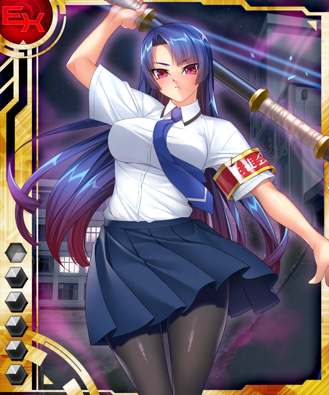▲【ふうま七衆】八津紫。さくらの里帰り衣装と同じだが、こちらは「ふうま七衆」のシリーズとして実装された。『対魔忍アサギZERO』の紫は五車学園の生徒会長で、腕に生徒会の腕章を巻いている