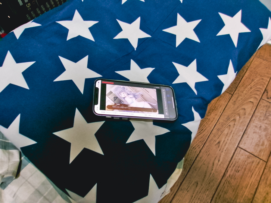 ▲仕事に疲れたら、クッションを重ねてごろ寝。そんな時にもスマホでSNSを眺める代わりに、『あまいろショコラータ』をプレイできる