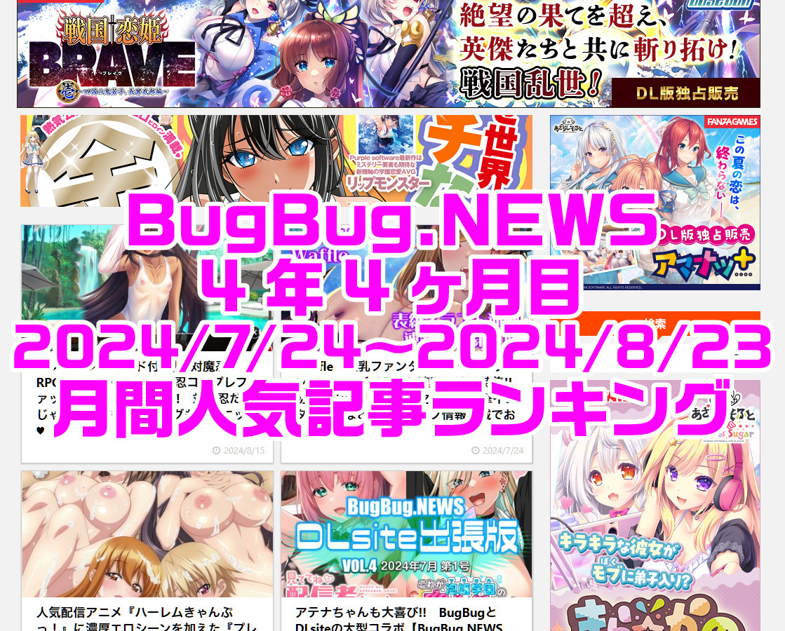 リニューアル以降ヌキゲー系の紹介記事がベスト10付近にジワジワ増殖して人気高騰中!! BugBug.NEWS 4年2ヶ月目の人気記事ランキング
