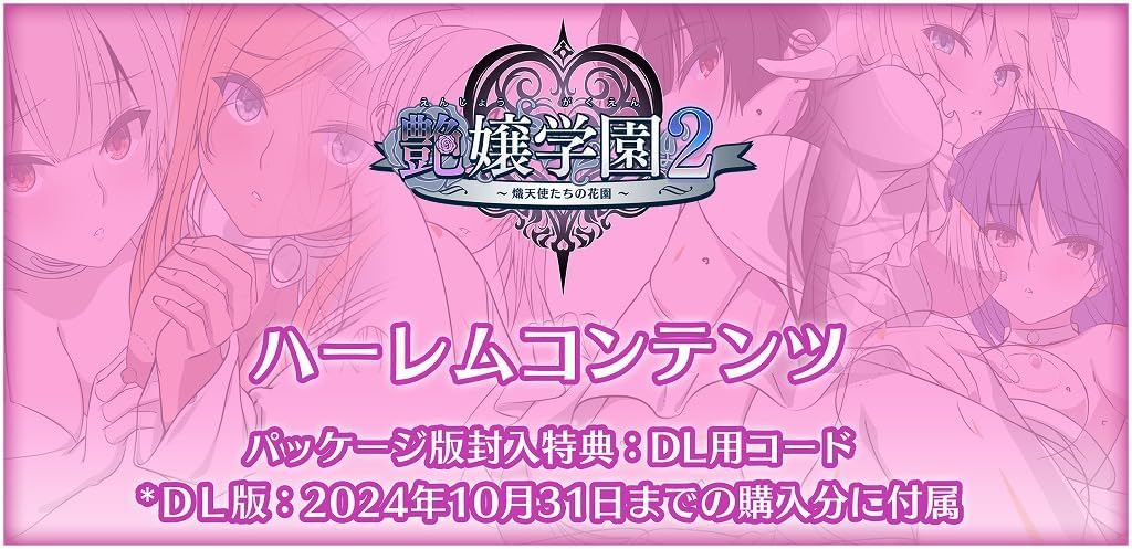 さらに、なんと今回特集した『艶嬢学園2 ~熾天使たちの花園~』の製品パッケージ版を2名様にプレゼント!! 応募期間は今から2週間後の10/6(日)23時59分まで(※延長しました)だ。簡単なクイズもあるので、詳しくは記事の一番最後にある応募方法をよくチェックして、奮って応募してほしい!!
