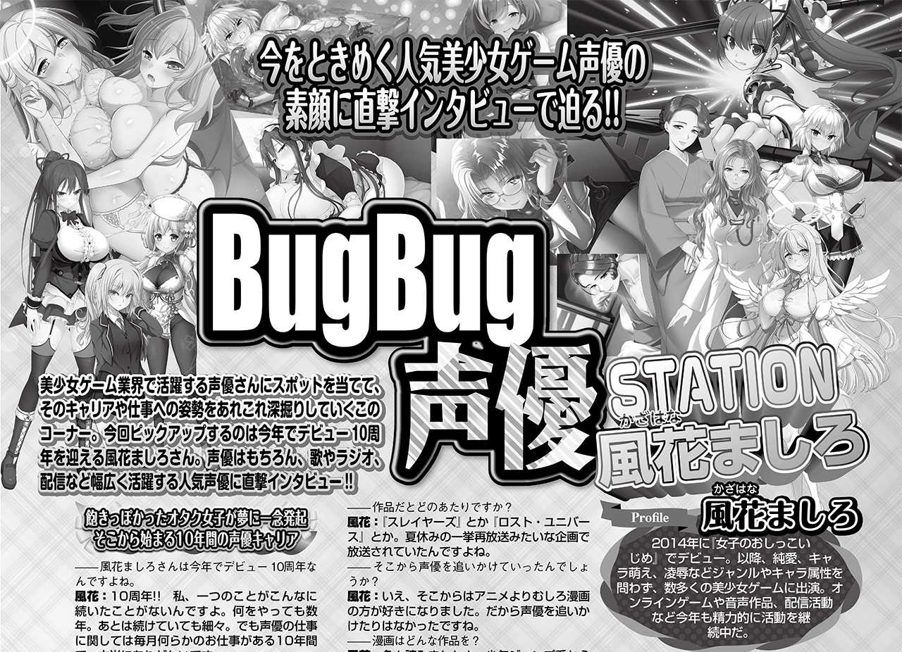 美少女ゲーム業界で活躍する声優さんにスポットを当てて、そのキャリアや仕事への姿勢を深掘りしていく、本誌の人気コーナー「BugBug声優STATION」。
