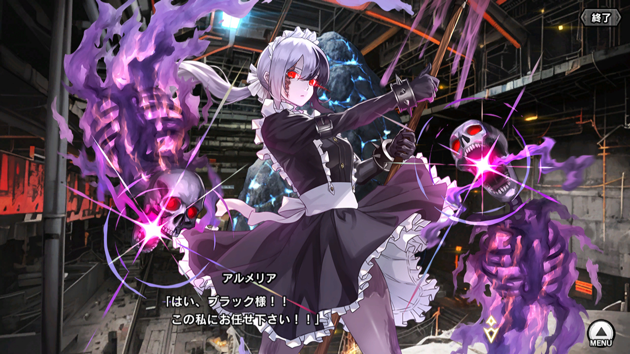 ▲いくつかの新ビジュアルが登場し、多くのキャラクターが退場する。リッチメイドのアルメリアさんはビジュアルが増えたし生き残ったしで、今後が楽しみな一人。といってもブラック様がどうなったか不明だし、行方不明になっているのなら、それを探し回ってストーリーには出て来ないかもしれない