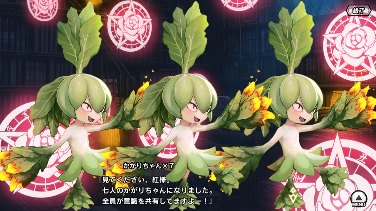 ▲ちなみに各チームの連絡はかがりちゃんが担当。シュヴァリエがポコポコ7体に増やし、それぞれが意識を共有しているので、各チーム1体のかがりちゃんを持ち歩けば状況がわかる。アンジェと小太郎の結婚の誓いを紅に秘密にするなど、融通も利く