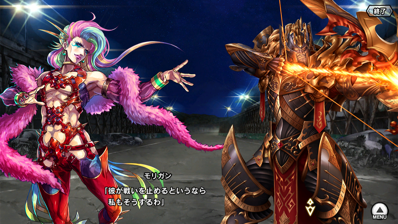 ▲鬼武衆を降伏させた後、モリガンとイクリンガス辺境伯が率いる死霊卿の軍勢と戦っていたアサギ達だったが、彼らは死霊卿の死を知り降伏する。元々辺境伯は死霊卿を暴君だと思っており、民や兵のために従っていただけだった。モリガンはそんな伯に惚れて、死霊卿の元に留まっていたらしい