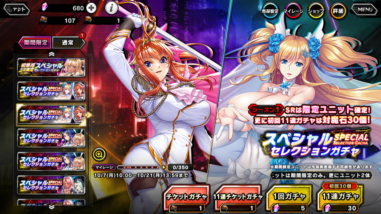 限定ユニットが排出されるスペシャルセレクションガチャも開催中!