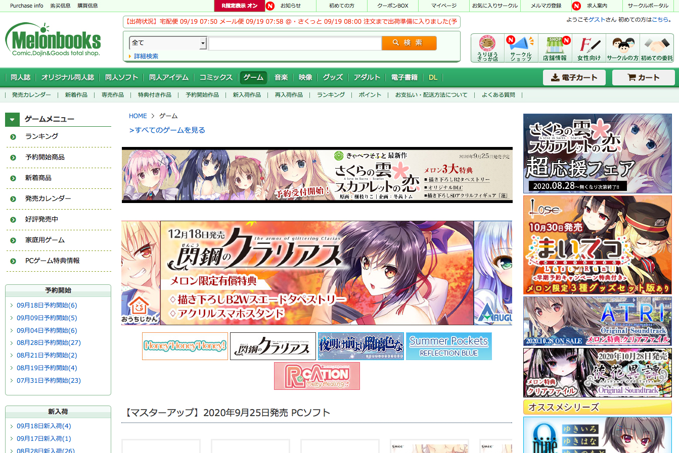【ゲーム】週間ランキング(成年向けのみ)(集計期間:2020年09月06日 00時〜2020年09月12日 24時)