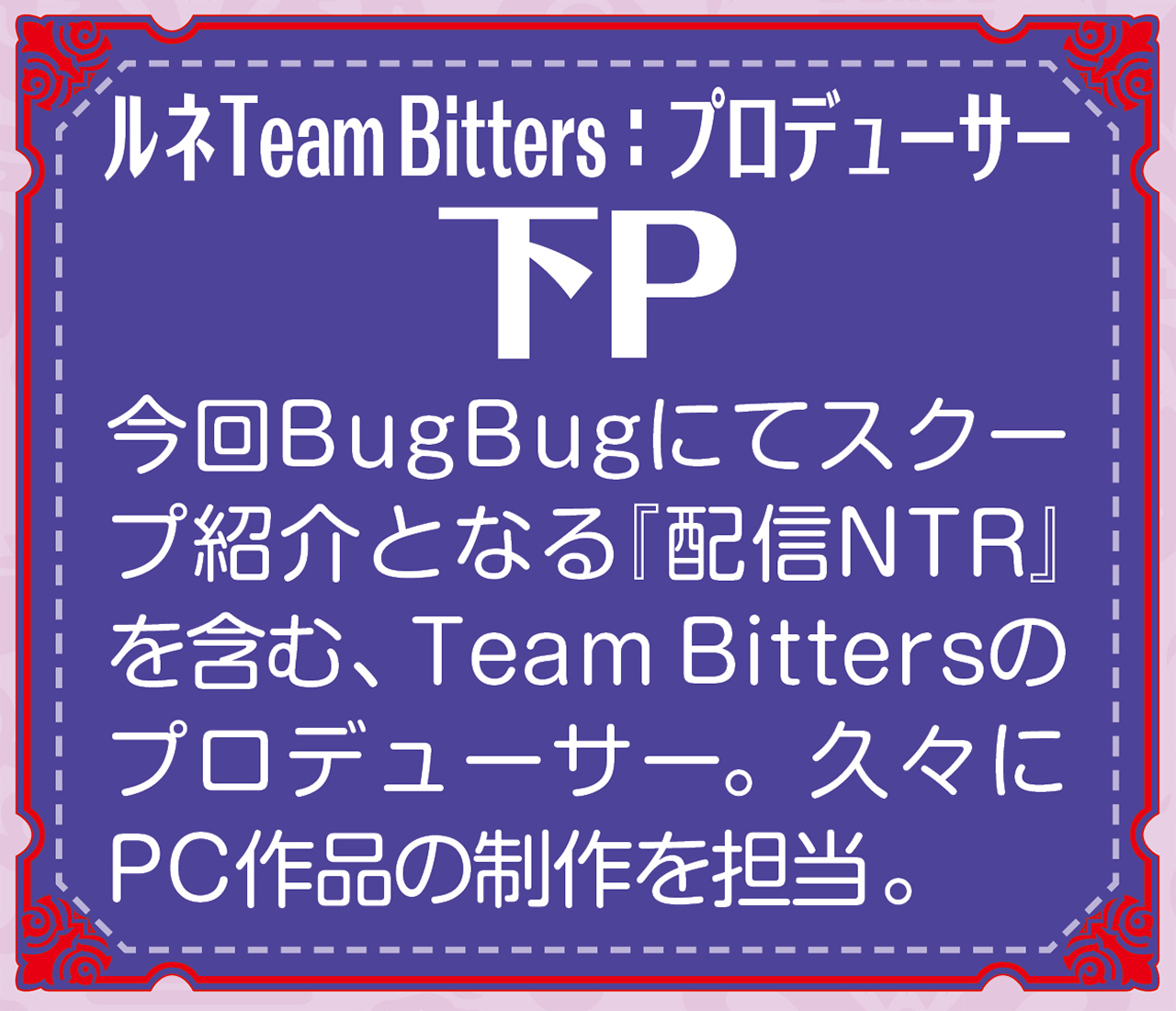 ──では次に今回のBugBugで初紹介のTeam Bitters7年ぶりの最新作『配信NTR』について、まずは発表となったお気持ちなどお聞かせいただけますか?