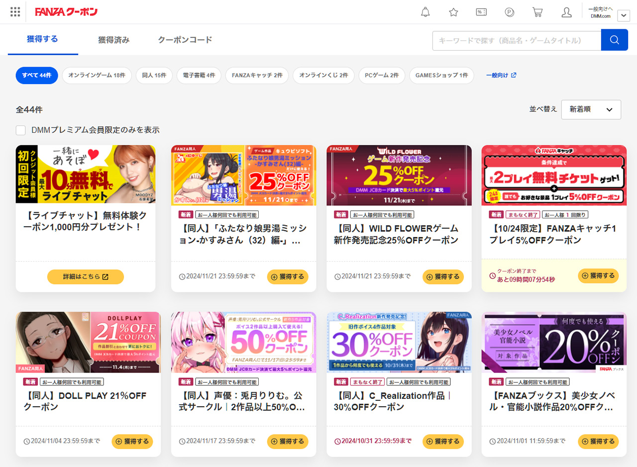なおクーポン自体も11月以降の配布を予定している。他にもお得なクーポンが満載なので、「FANZAクーポン」のページをこまめにチェックしておくのがオススメだ。