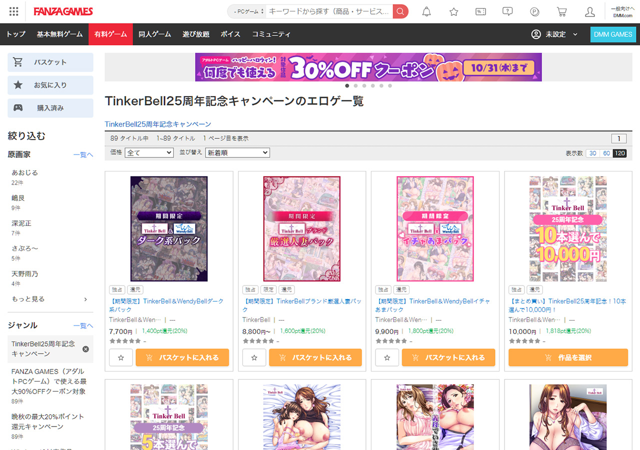 『TinkerBell25周年記念キャンペーン』がFANZA GAMESにて絶賛開催中だ。期間は10/25(金)~11/28(木)23:59まで。