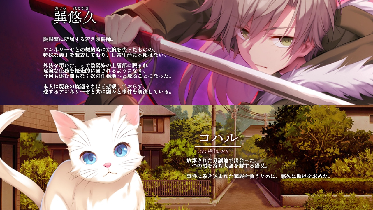 前作と同じく、陰陽師の主人公・巽悠久と美少女悪魔のアンネリーゼによる迷コンビが、人ならざるモノの起こす難事件に挑んでいく。企画・シナリオ・かずきふみ氏、キャラクターデザイン・原画・きみしま青氏という、豪華スタッフによるコンビも前作から続投だ。