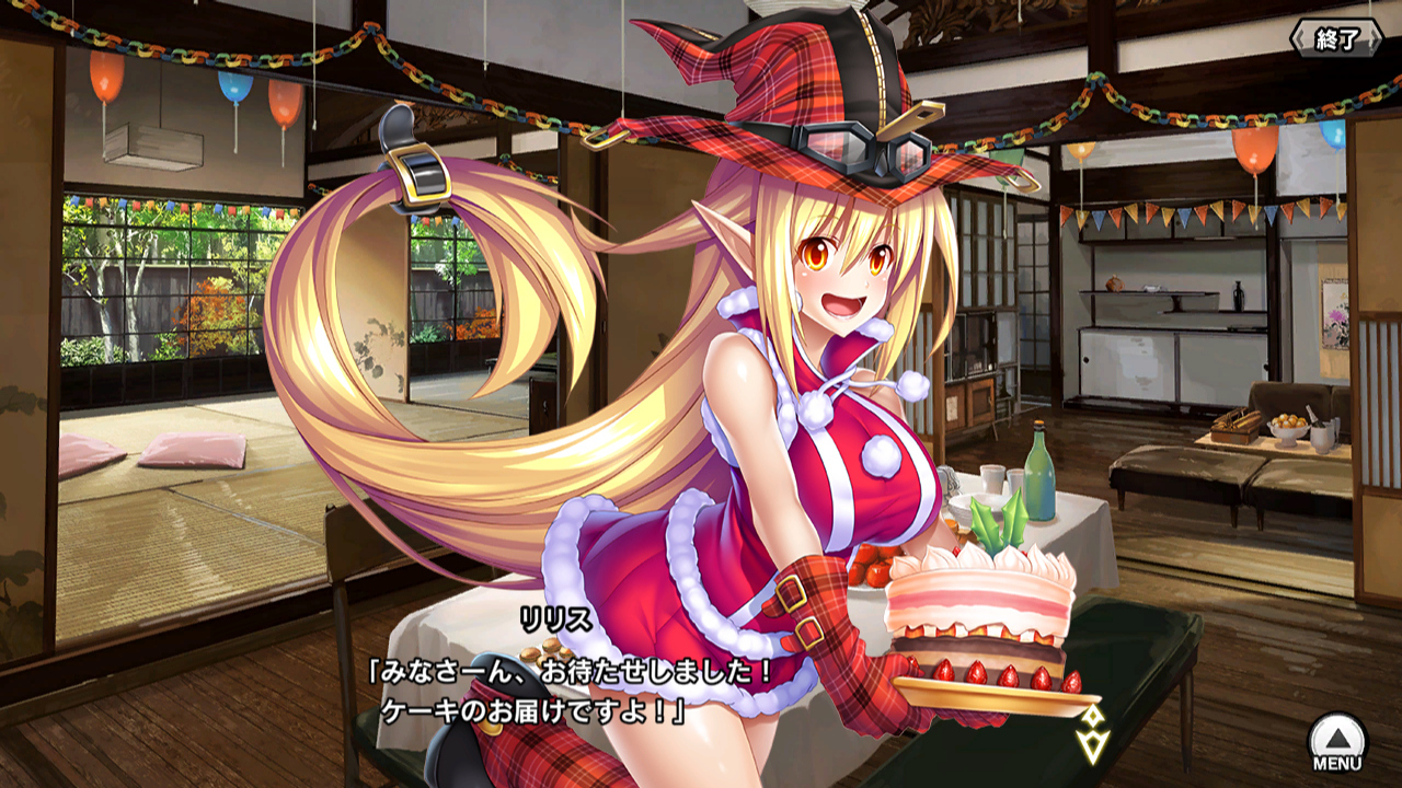 ▲せっかくなので参加者全員紹介していこう。津島優紀子はこの格好だと誰かわからないかもしれないが、包丁持った五車の先生だ。今回の限定ガチャでサンタコスを手に入れた。凜子はプレゼント交換会のプレゼントとして、自分がモデルになった「丑娘さんフィギュア」を持ち込む。正直、欲しい