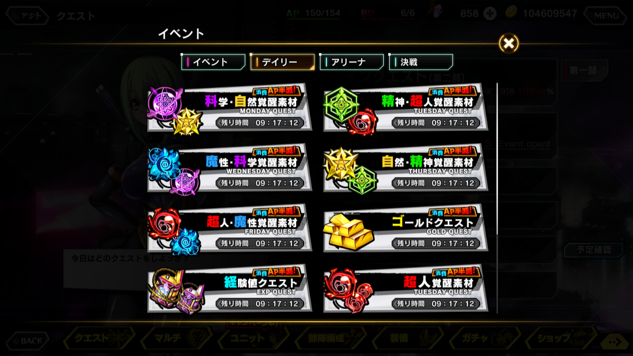 ▲ストーリーイベント以外にも、「メインクエスト消費AP半減」、「メインクエストレイドボス出現率アップ」、「デイリークエスト全開放&AP半減」、「強化成功率2倍」の各種キャンペーンが実施中。どれも開催は12月31日9:59まで
