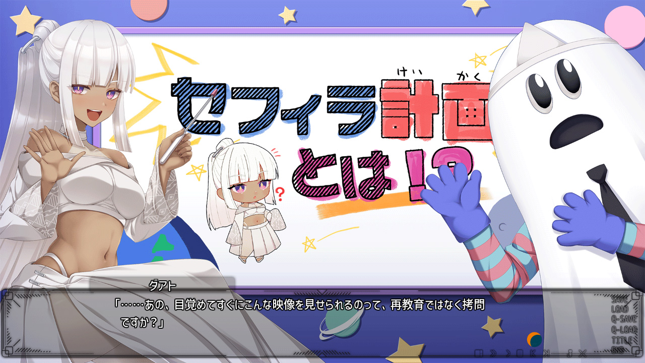 主人公であるダアトは教育課程にあったアンドロイドの知性体で、少女のボディを与えられ月面基地で目覚めることになります。そこには多くの幽霊が存在しており、セフィラの先輩でありヒロインでもあるビナーと共に、彼らの魂を救う…つまり成仏させるのが役割。