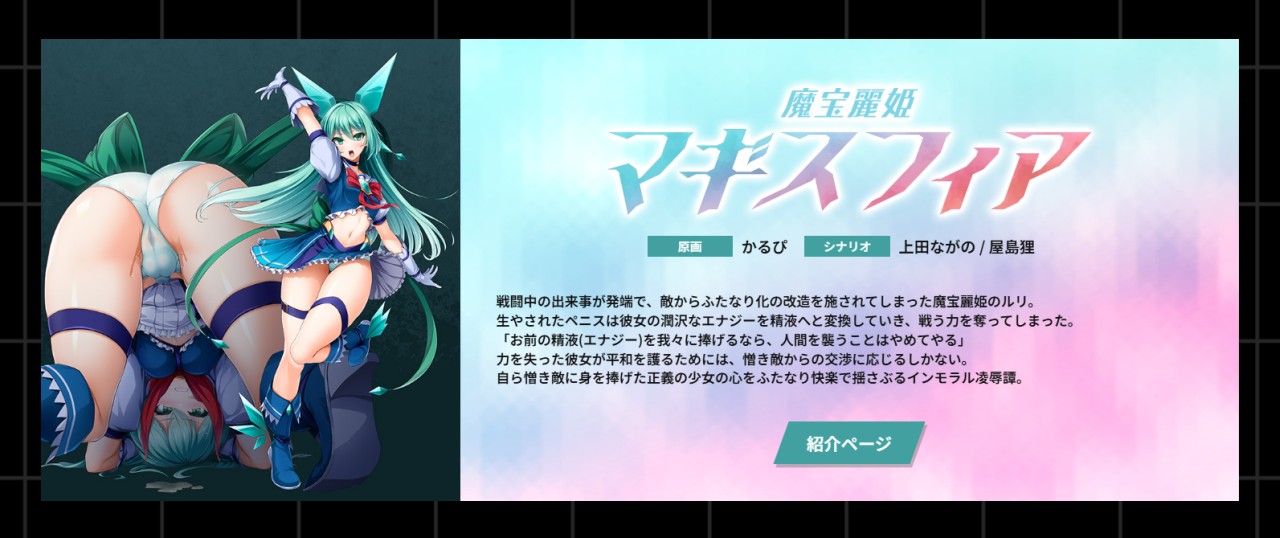 襲い来る怪人から世界を守るため…エクスティアに変身して立ち向かえ!! Lusteriseの人気シリーズ『光翼戦姫エクスティアコンチェルト』の最新作が登場だ。行動的な夏音と知的な千秋という、タイプの異な ... 人の欲望を暴走させるギルツシードに幼なじみの少女ふたりが変身して立ち向かう!! 『光翼戦姫エクスティア』から続くLusteriseの看板作品『光翼戦姫エクスティアコンチェルト』シリーズに、待望の最新作 ... 華麗に戦う変身ヒロインの王道なストーリーは勿論、敵に敗北するとエッチなことをされちゃうIFルートも見逃せない!! Lusteriseの看板作品である変身ヒロインもの『光翼戦姫エクスティア』シリーズ最新 ... クールでミステリアスな闘う美少女が怪人に襲われ犯されちゃう姿に愚息も昇天!! Lusteriseを代表する変身ヒロインもの美少女ゲーム待望の新シリーズ『光翼戦姫エクスティアコンチェルト』第2弾がいよい ... 正義の味方で清楚なヒロインであるからこそ汚される美学が存在するのだ!! わかるかね? Lusteriseを代表する変身ヒロインもの美少女ゲーム『光翼戦姫エクスティア』待望の新シリーズがついに登場!! ... イケメン主人公が超美少女になったら、女の子としての快感に目覚めちゃう♡ TSの興奮も味わえる「光翼戦姫エクスティア」スピンオフ第3弾!! Lusteriseよりリリースされている「光翼戦姫エクスティア ...