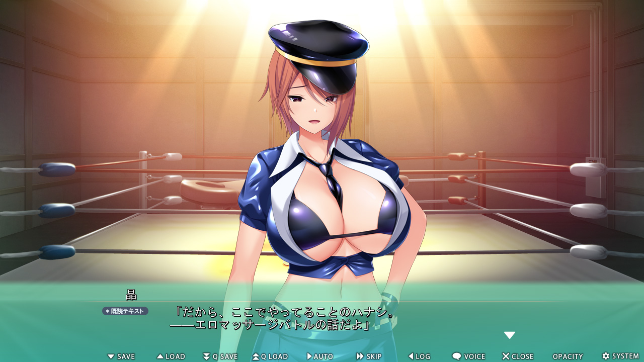 ある夜、男子学園生が金を貸して欲しいと主人公に頼んできます。何か良からぬことをしているのでは…と気になった主人公は彼の後を尾行することに。すると「エロマッサージバトル」なる非合法の賭け事を行っている現場を目撃!! しかも、そこには露出度の高い衣装を着た晶の姿が…。