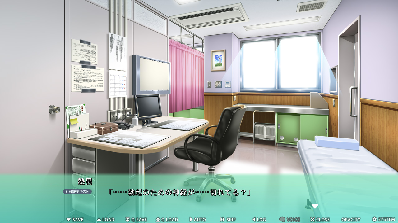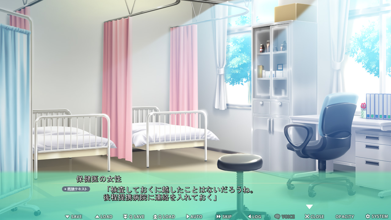 ▲気がつくと学園の保健室。外傷はないが身体に妙な違和感があると保健医に伝えると病院を紹介され…