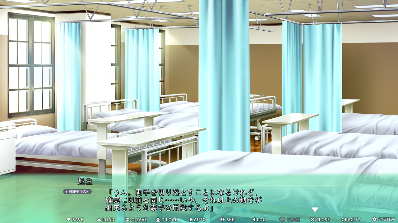 ▲亡き師匠の願いに応えるため腕を義手に変える決意を固める主人公。アツい展開だけど美少女ゲームだよねコレ?