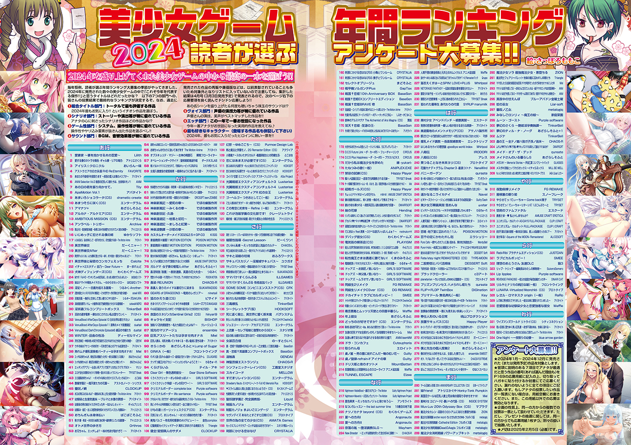 ▲プレゼントを応募するアンケートハガキにて「2024美少女ゲーム年間ランキング」のアンケートも一緒に募集しているぞ。お年玉プレゼントに応募するついでに、2024年の美少女ゲームの中から最高の一本を選ぼう!!
