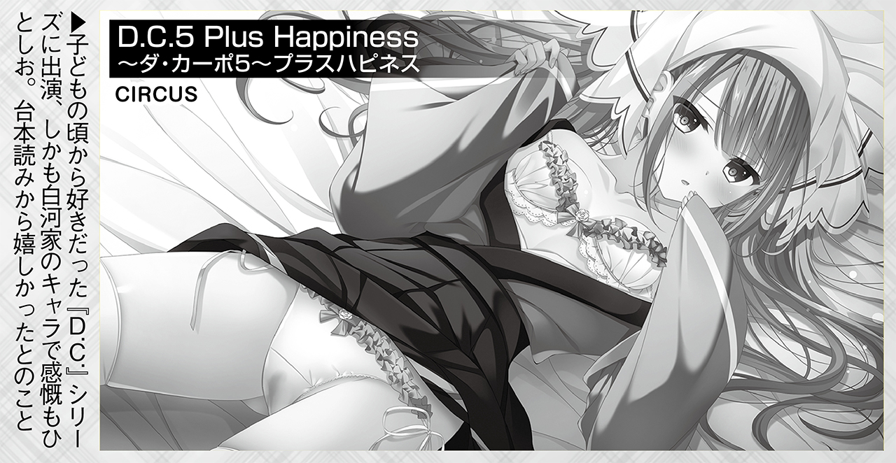 相模:『D.C. ~ダ・カーポ~』とか見ていましたよ。でもゲーム原作とか全然知らず、「可愛い女の子が出てくるなあ」くらいですね。歌も好きでしたし。それに親も『D.C. ~ダ・カーポ~』を知っていたんですよ。理由は謎なんですけど(笑)。だから『D.C.5 Plus Happiness ~ダ・カーポ5~プラスハピネス』(CIRCUS)に出演が決まった時は嬉しくてお母さんに報告しちゃいました(笑)。