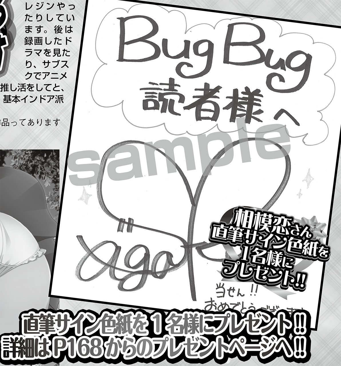 ▲直筆サイン色紙をプレゼント!! アンケート用紙のプレゼントグッズの欄に「A」と記入して応募しよう