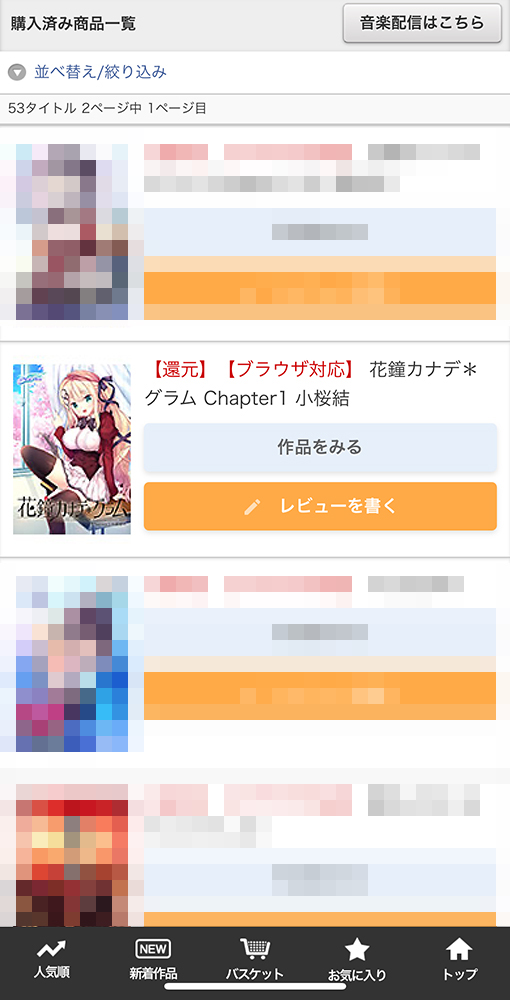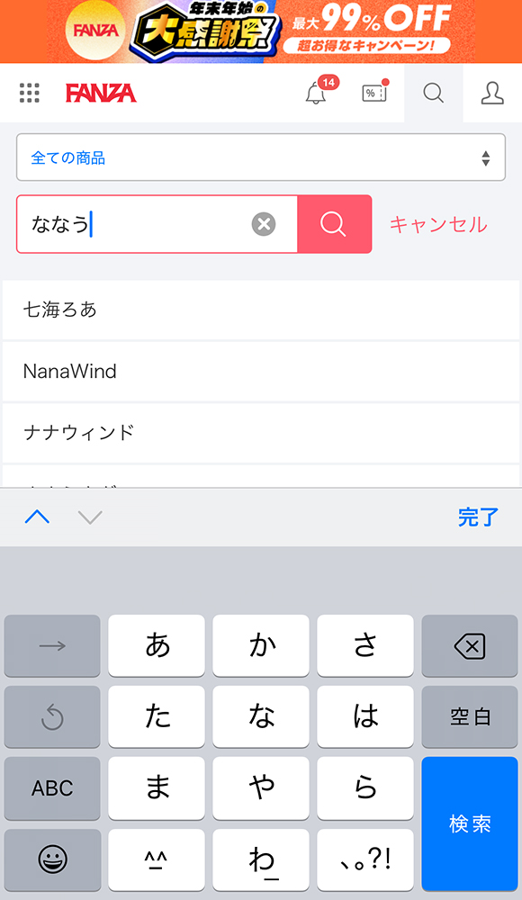 ▲ログインしたら虫眼鏡のアイコンから本作『花鐘カナデ*グラム Chapter1 小桜結』を探してみよう