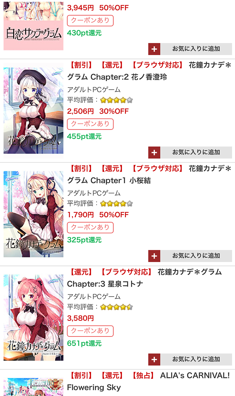 関連記事 『白恋サクラ*グラム』などNanaWindの人気作品の流れを組む新たな連作シリーズ最新作、間もなく発売!! 『花鐘カナデ*グラム』は、同じ学園を舞台に毎作ごとにメインとなるヒロインを変え、イチャラブを ... ヒロイン一人一人にピックアップした連作シリーズの最新作の第三弾は人気者の元生徒会長が登場!! 低価格ながらも非常に高いクオリティのビジュアルとエロ、そして読み応えのあるシナリオで人気を誇る『花鐘カナデ ... 『白恋サクラ*グラム』の2大ヒロイン・白羽優理&久遠寺一葉との恋人となった後日談が楽しめるNanaWind新作AVG NanaWindの人気作である『春音アリス*グラム』『白恋サクラ*グラム』から続く ... 今度のメインヒロインはちょっと心の壁を作ってる巨乳の後輩・花ノ香澄玲ちゃん♪ 『白恋サクラ*グラムLF』の発売も楽しみなNanaWindが11月に発売した『花鐘カナデ*グラム』の第二弾『Chapter ... 『白恋サクラ*グラム』のヒロイン・白羽優理&久遠寺一葉のその後が描かれる待望の続編がお目見えだ!! 人気絵師である七尾奈留氏&Mitha氏が描く、NanaWindのヒット作『白恋サクラ*グラム』。その ... 人気絵師・あゆま紗由氏を原画に起用し、よりHでより手軽に遊べるAVGを目指した学園恋愛ストーリー NanaWindが手掛けた人気作『春音アリス*グラム』や『白恋サクラ*グラム』と同じ世界を舞台に、『春 ... HCG率は80%以上!! 人気絵師であるあゆま紗由氏を原画に迎えよりHで手に取りやすい価格でお届けするNanaWindの恋愛AVG 『春音アリス*グラム』や『白恋サクラ*グラム』の世界観をそのままに、 ...