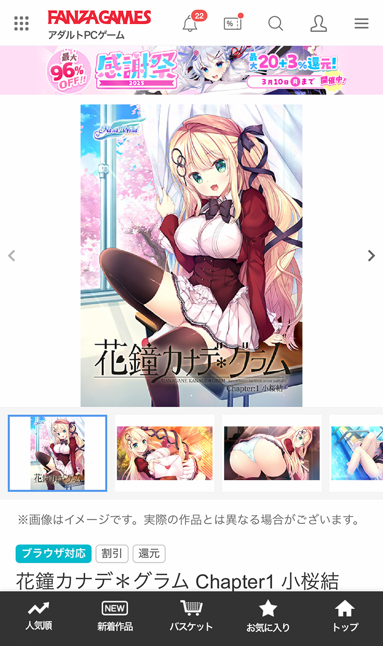 そんな人気作『花鐘カナデ*グラム Chapter1 小桜結』は、FANZA GAMESの「ブラウザ版」でもプレイ可能。FANZA GAMESで「ダウンロード版」を購入すると同時に入手できる「ブラウザ版」は、PCを持っていなくても、ネット環境さえ整っていればタブレットPCやスマホ(iPhone・Androidとも)でプレイOK。ダウンロードの必要がなく購入してすぐにプレイできたり、異なるデバイス間でセーブデータを共有できるなど、より手軽に美少女ゲームをプレイできるメリットが満載なのだ。