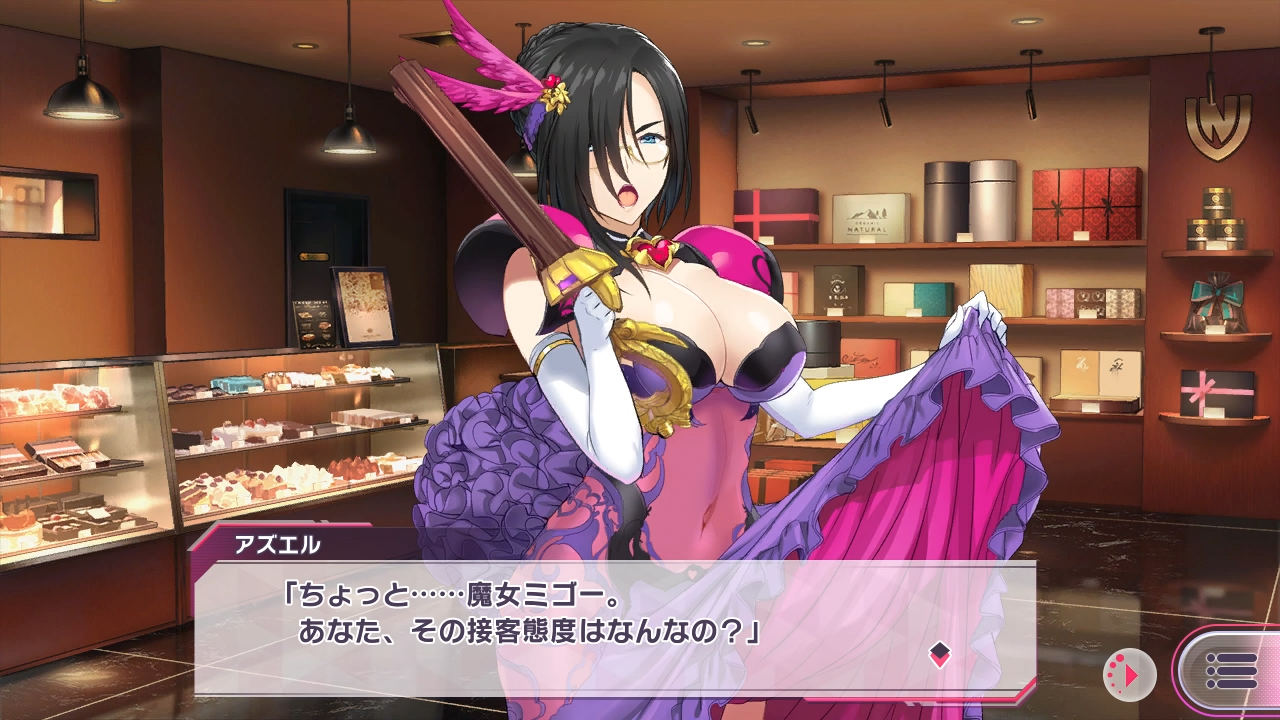 バレンタインの売り子をすることになったアズエル。コールセンター業務の甲斐あってか、完璧に接客をこなす。