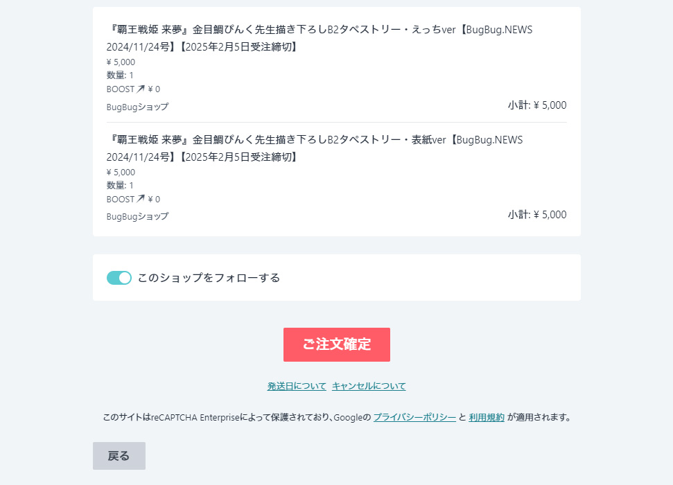 ▲注文内容、支払い方法、届け先などをよく確認して、一番下の「ご注文確定」ボタンを押せば、無事注文完了!! 応募〆切は明後日2025年2月5日(水)いっぱいまで。もう目の前に迫ってきているので、なるだけ急いで応募しよう!!
