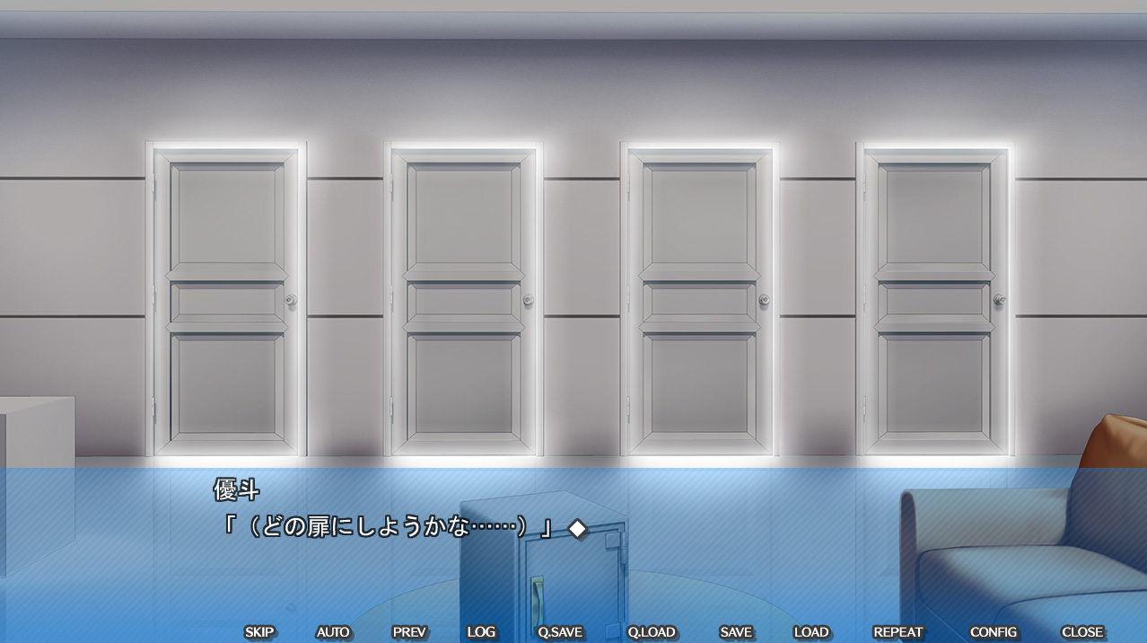 ▲4つの扉。この後、扉を順次選択して中で様々な指令を受けてHすることに