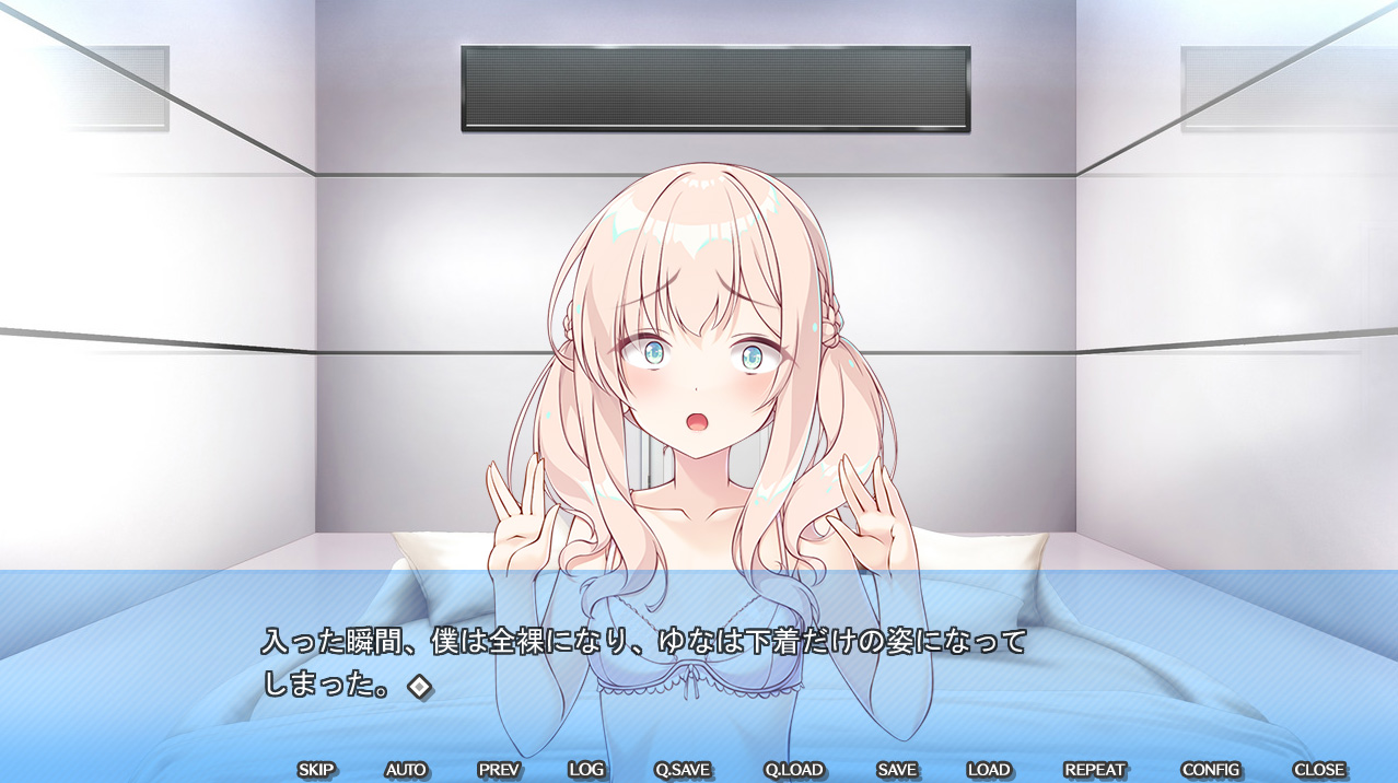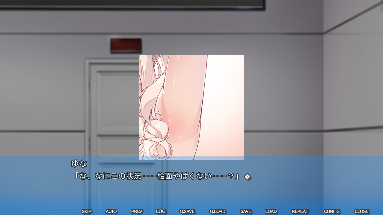 そして、目が覚めると何もない部屋に閉じ込めれれていた主人公・優斗と、ヒロインのゆな。陰キャな主人公からしてみると、彼女はカースト上位な女性で、そんな彼女と一緒にいることに驚きますが、とにかく今は意味不明な状態。優斗はエロ同人の知識から、こういう部屋はセックスすれば出られるのではと考え、ゆなにそれを話しますが…。