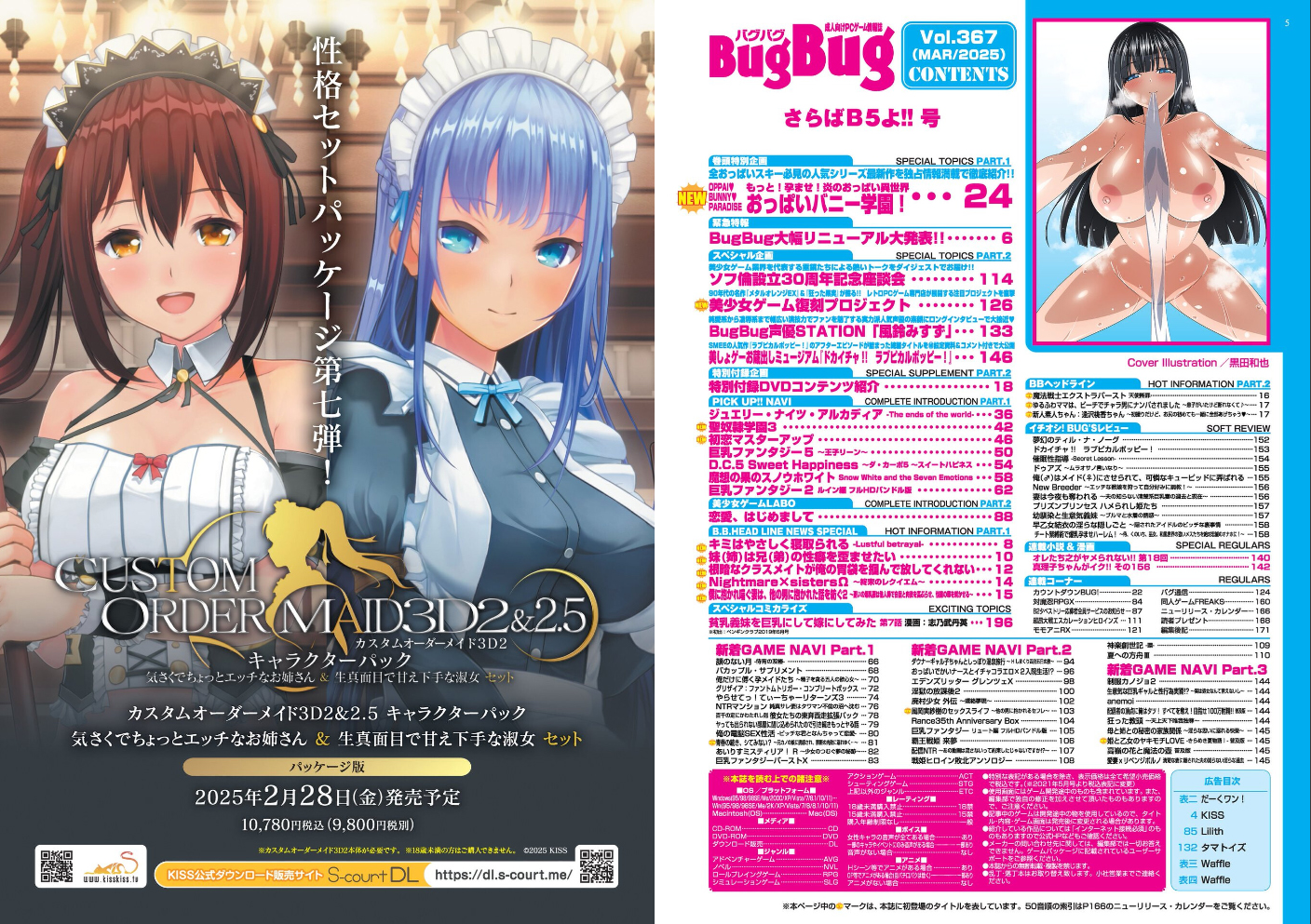 関連記事 年末商戦が終わったらすぐ春商戦!! 今年の春も美少女ゲームは大作揃いで大盛り上がり!! 『BugBug』3月号は本日発売!! 今月は萌えエロ系で絶大な人気を誇るブランド・みるくふぁくとりーの最新作『も ... 電子書籍版なら紙版より税込で780円も安価にゲットできる!! BugBug2月号の電子書籍版は本日発売!! 今月は新春特大号として、紙版にはいつものDVDに加えてもう一つ「BugBug2025カレンダ ... まずは販売サイトの試し読みサンプルでお宝情報を無料でチェック♪ BugBug1月号の電子書籍版は本日発売!! 電子書籍版には付録のDVDは付いてないけど、税込1,100円と紙の本より安価でお得。デジタ ... 年末年始商戦で注目の美少女ゲーム情報を電子書籍でお得にGET♪ 日曜日だけどBugBug12月号の電子書籍版は毎月10日の本日発売!! 電子書籍なので土日も関係なく販売しているのが嬉しいのだ。 付録D ... 注目の美少女ゲーム情報をスマホやタブレットで手軽にチェック♪ BugBug11月号の電子書籍版は本日発売!! 電子書籍版には付録のDVDは付いてないけど、税込1,100円と紙の本より安価でお得。スマホ ... スマホやタブレットでいつでもどこでもお手軽に美少女ゲーム情報が楽しめちゃう♪ BugBug10月号の電子書籍版は、毎月10日配信なので本日配信!! 電子書籍版には付録のDVDは付いてないけど、税込1, ... 電子書籍版ならスマホやタブレットでお手軽に美少女ゲーム情報が楽しめる!! BugBug9月号の電子書籍版は連休中だけど本日配信!! 紙の雑誌は取次(出版業界の流通)が土日祝を休むため発売日が前倒しにな ...