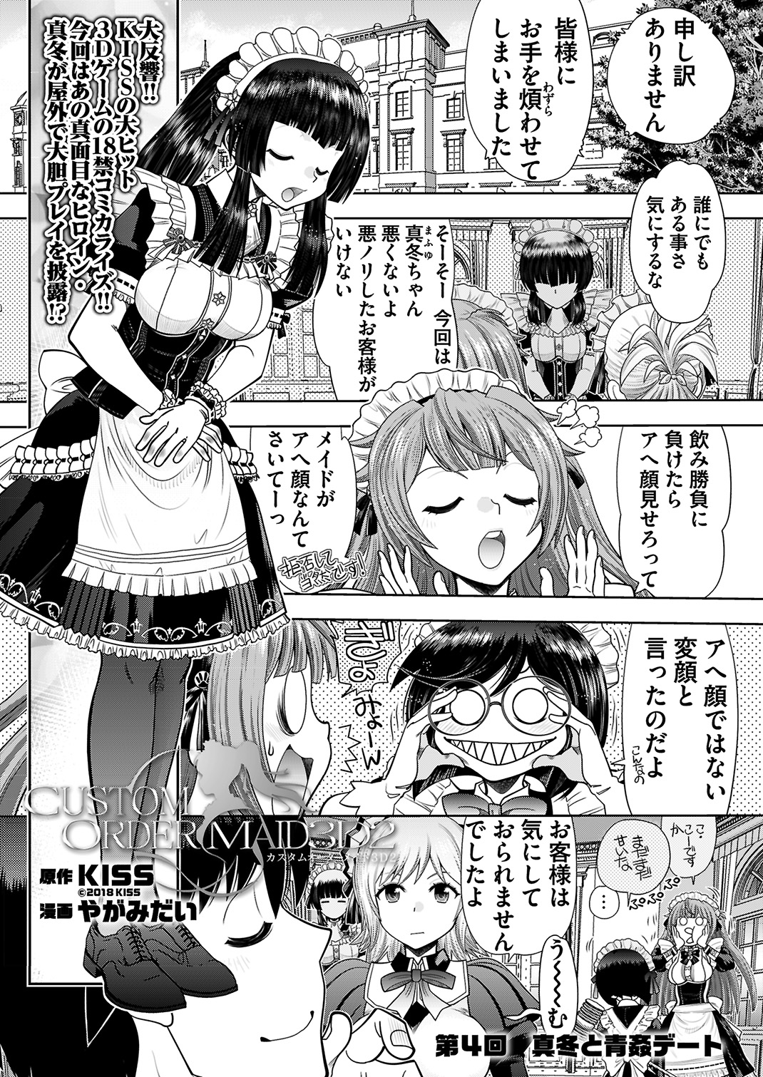 「ダメぇ♡ 今動くの…2人に見つかって…んふぁ」 BugBugで大好評連載中の、やがみだい先生による大人気3D美少女ゲーム『カスタムオーダーメイド3D2』18禁コミカライズ。第4話は先月に引き続き真面目なヒロイン・氷室真冬をピックアップ。羞恥心が強い彼女の性格を治そうとする主人公。その方法は…まさかの屋外青姦デート!?