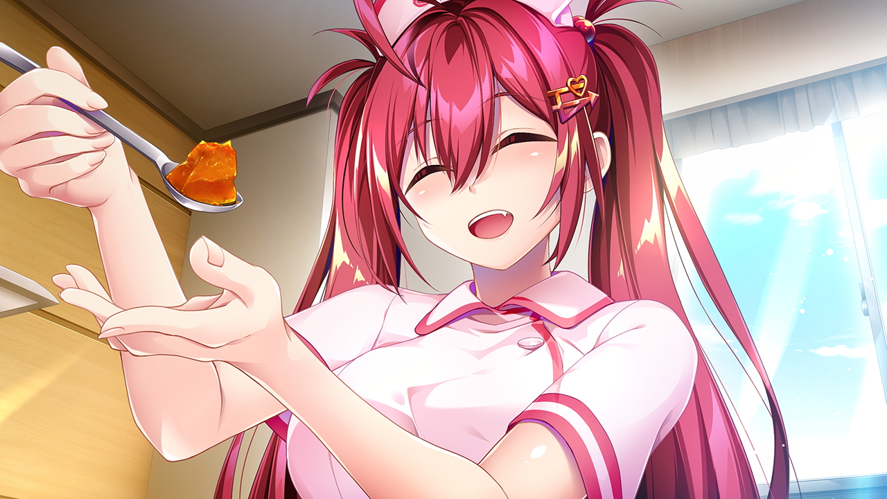 こんな風に、明るく親しみ易くて一途に主人公を想うまな。彼が甘いものを食べたがったのでシュークリームを手作りし、わさび入りのものを仕込むなどいたずらっ子な面もあって、まさに甘い中にも刺激がある女の子なのね。口から覗く八重歯もチャームポイントで、「あっはっはっ」と大声で笑うところもねここのお気に入り。ちなみに、物語の後半では退院した主人公とまなとの甘エロ同棲生活も垣間見られるわよ。