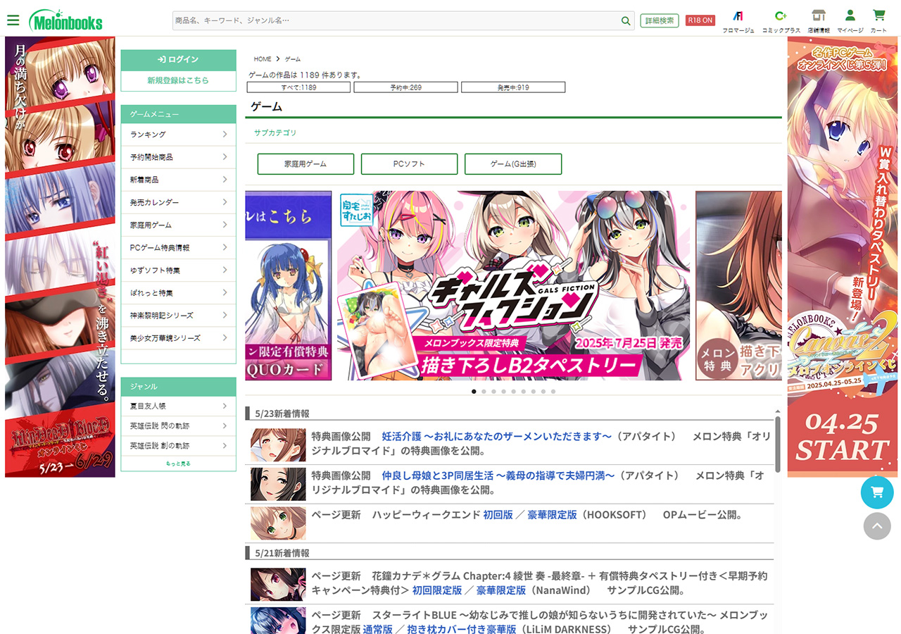 月間ゲーム予約ランキング(全て:一般向け&成年向け)5月24日調べ)