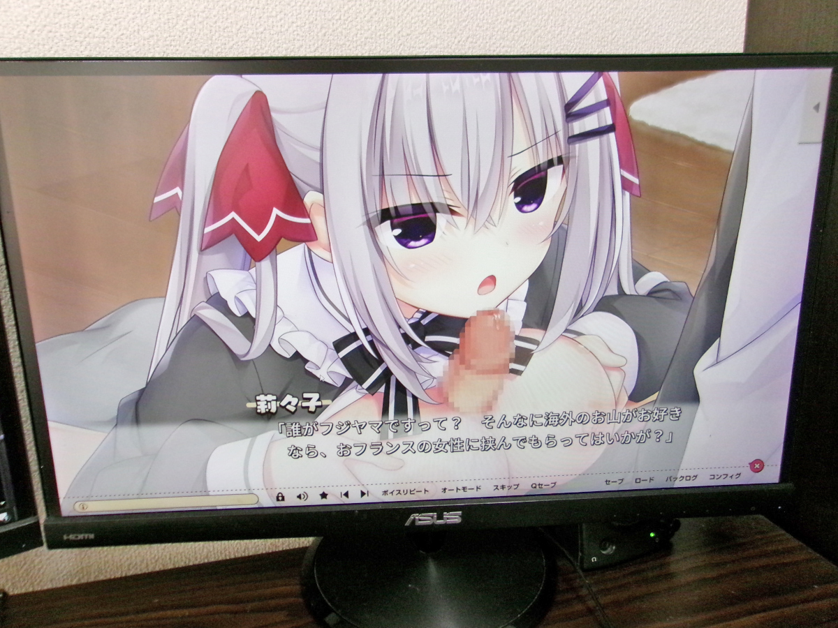 ▲家に帰ってきたら、今度こそ莉々子とのエッチシーンをたっぷり堪能。PCディスプレイの大画面で味わうパイズリは一味違う。冷たい目を向けながらも、おっきなおっぱいを活かした奉仕をしてくれる彼女のことが大好きだ!!