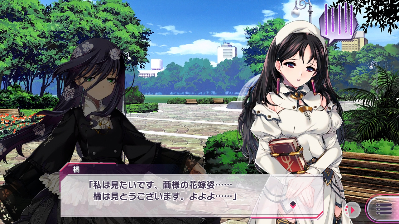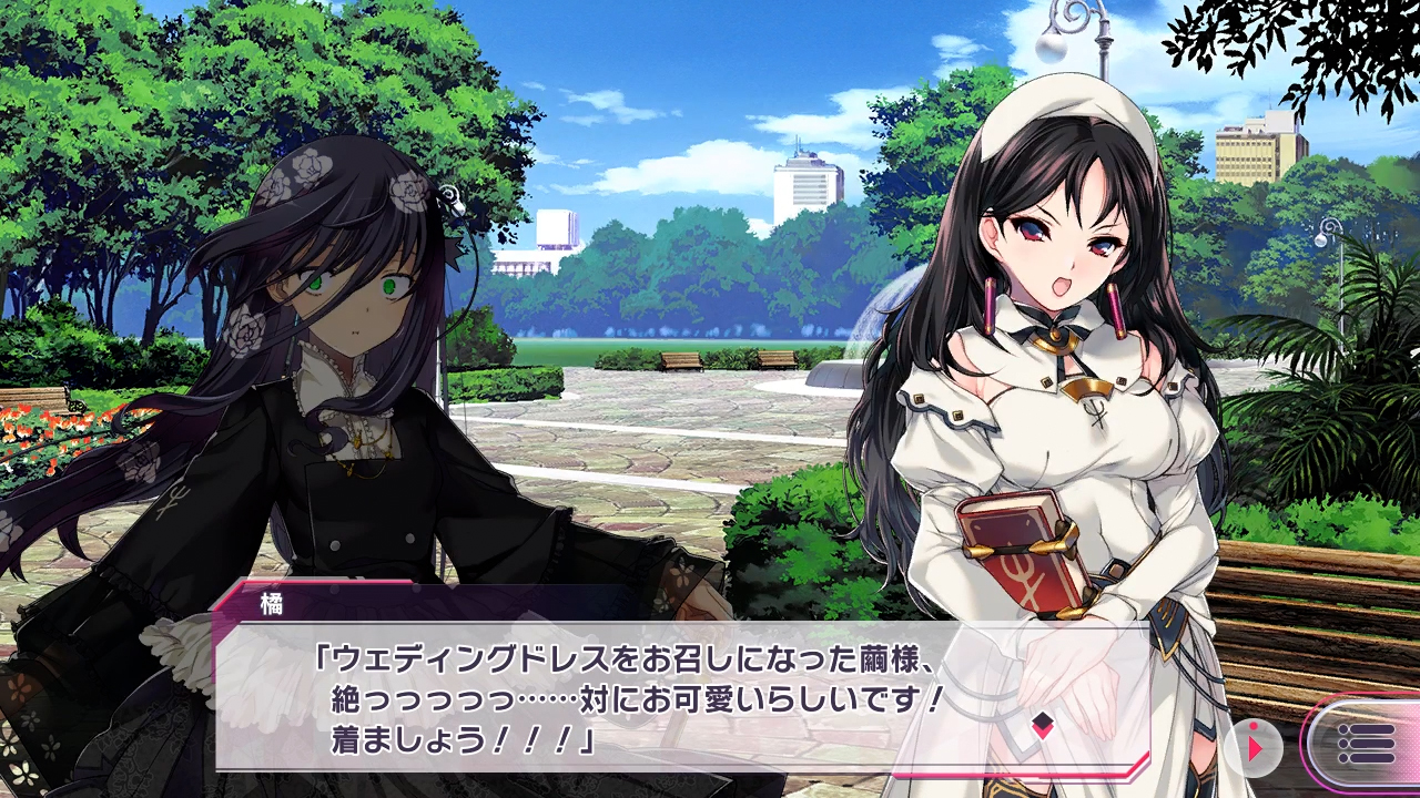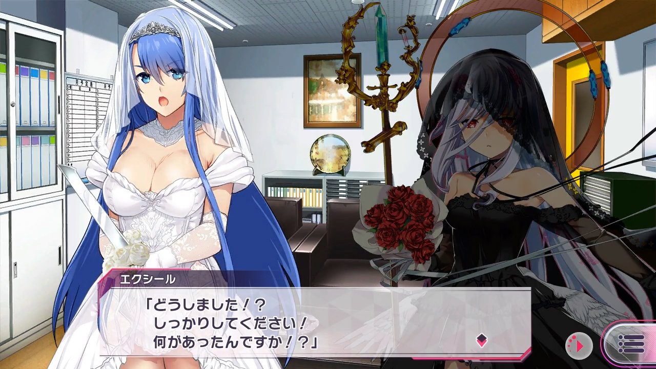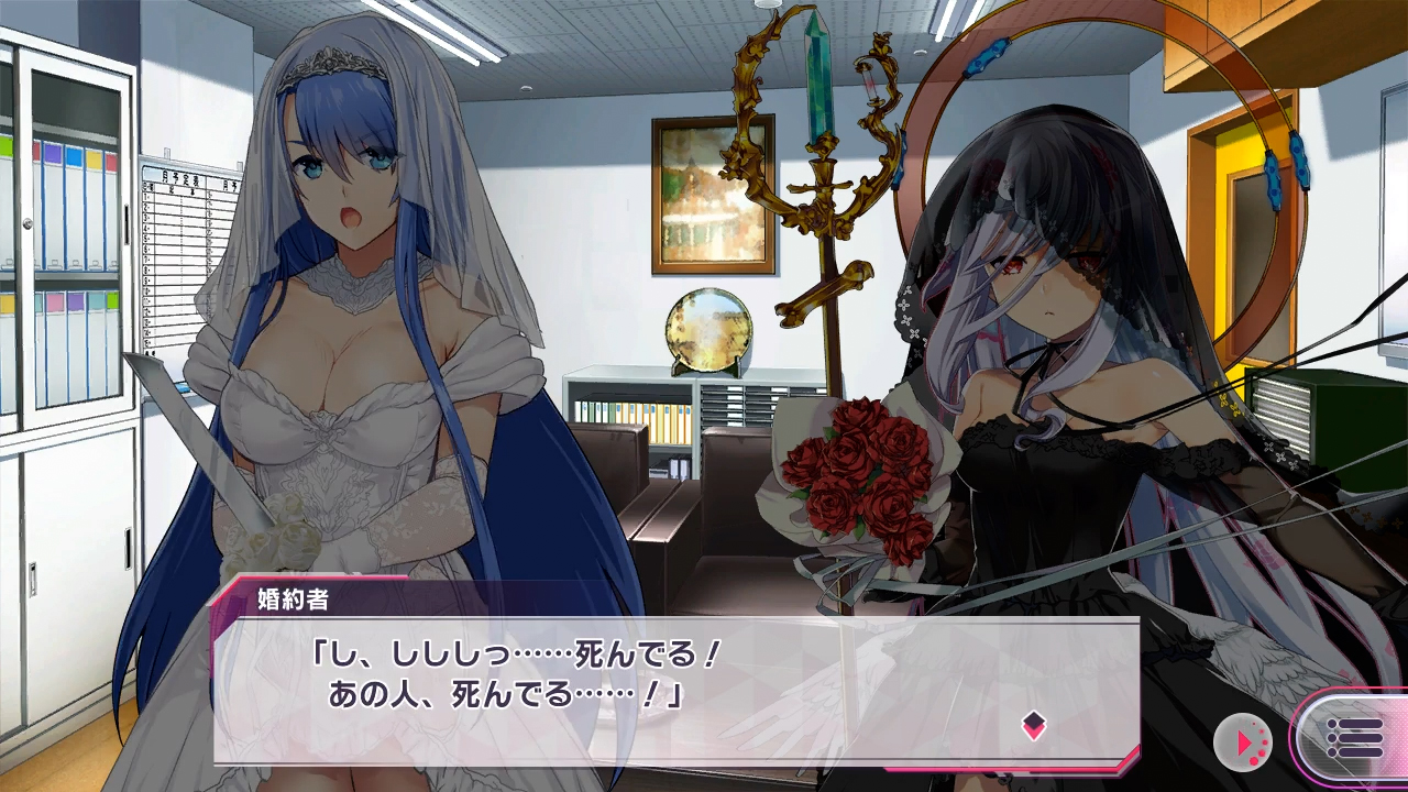 ▲繭は花嫁衣装を着ることに乗り気じゃないけど、彼女の側近である修道女・橘は、何が何でも見たいようで、おかしなテンションに…