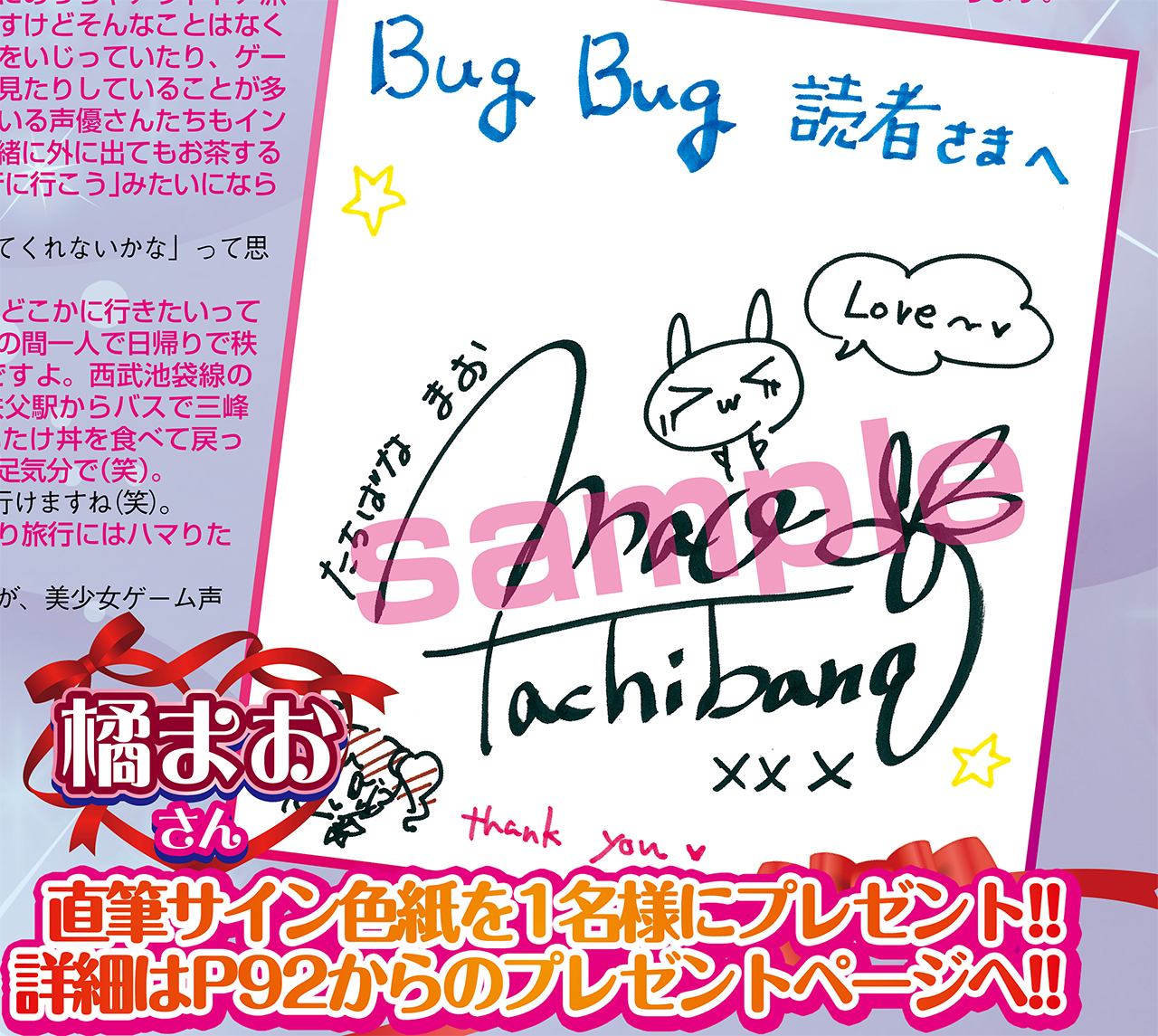 ▲紙の誌面では橘まおさんの収録作品から10本をチョイスした動画を付録DVDに収録、アンケートに答えて色紙プレゼント応募もできるぞ