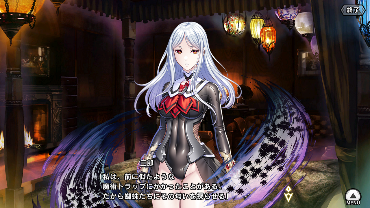 ▲廃墟から地下に入ると、そこは別の空間になっておりそこら中に魔術トラップが仕掛けられている。メインクエスト・チャプター9"迷宮"で魔術迷宮に囚われたことがある三郎はすぐに魔術師の作った空間だと気付き、新しい忍法、瘴気蜘蛛で呼び出した大量の蜘蛛と、幽鬼蜘蛛で呼び出した巨大な蜘蛛でトラップを破壊する