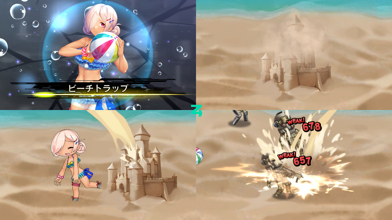 ▲奥義・ビーチトラップの演出。路傍石を使って見えない状態で、砂浜にお城を作ったあむ。ビーチボールを投げると同時に城から砂を射出し、ボールに気を取られた相手にぶっかける。一人であっという間に城を作り上げる根性と速度と正確性が、路傍石以上にライブラリーさんの評価するポイントな気がする