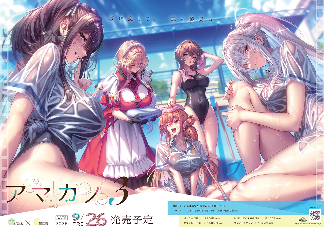 ▲今月の見開き広告は、あざらしそふとより9月26日発売予定の『アマカノ3』。純愛系が好きなら絶対プレイしておきたいシリーズ最新作だ